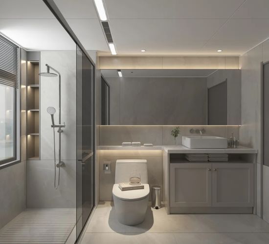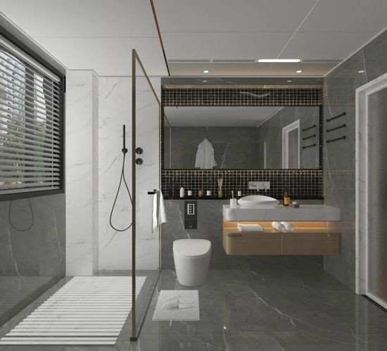煥新裝衛(wèi)浴 融合R1K+4平博美大板 大理石與白色大板吊頂?shù)膬?yōu)雅組合,讓整個衛(wèi)浴空間凸顯小清新的感覺,明亮簡約,久看不膩。