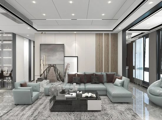 新風(fēng)尚客餐廳頂 阿爾卑斯白大板(自由天)頂+126/127造型梁+4套線性配套 我們以現(xiàn)代、時尚為設(shè)計理念,營造空間中的清透、休閑、舒適感。