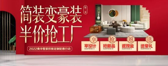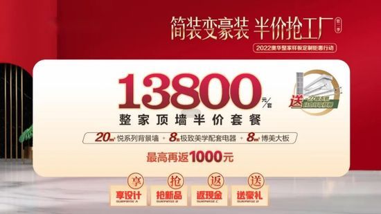 2022年奧華開年大促來啦!簡裝變豪裝·半價搶工廠一大波爆款單品任你挑選,還有低至5折的優(yōu)惠等你來購! 頂墻套餐 優(yōu)惠加倍