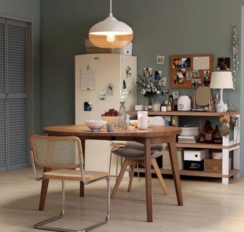 如果說(shuō)用一個(gè)字來(lái)表達(dá)愛(ài)的終極目標(biāo), 那便是“家”。 和對(duì)方擁有一個(gè)彼此的小屋,一日三餐,陪在愛(ài)人身邊,雖是平凡,卻能盛滿我們的心。 日本電影《花束般的戀愛(ài)》,雖然講述的是一段如花束一般美好卻無(wú)疾而終的愛(ài)情故事。但兩人在出租屋打造的一居室,可謂是99%情侶都羨慕的家。 源氏木語(yǔ)設(shè)計(jì)師復(fù)刻《花束般的戀愛(ài)》中男主角山音麥的家——日式溫馨一居室,整體空間不大,卻在細(xì)節(jié)、軟裝設(shè)計(jì)中,感受夫妻、伴侶窩在家里的幸福感! 小戶型也能擁有大大的浪漫感,談一場(chǎng)窩在家里的愛(ài)情。 · 客餐廳/一半煙火 一半詩(shī)意 整體空間不大, 多采用開(kāi)放式結(jié)構(gòu), 選用原木色家具營(yíng)造溫馨氛圍感, 利用巧妙的軟裝搭配讓空間具有層次感。 源氏木語(yǔ)設(shè)計(jì)師將客餐廳以餐桌為中心, 劃分LDK空間。