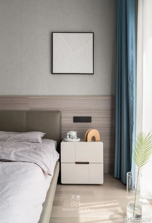 主 臥 主臥的整體感覺清新淡雅,克制的用色方案,在美化空間的同時,也不會讓人忽略掉材質(zhì)本身的質(zhì)感。而背景交織的線條,更加營造出了美妙的立體感。