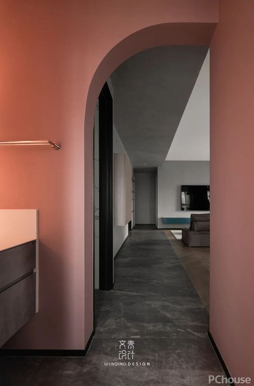 洗手間 設(shè)計(jì)師在筆直硬朗的實(shí)墻中注入了弧形線條,通過線條中和了色彩上的視覺沖擊強(qiáng)度,讓慢慢暈開的橙色不再突兀,反而舒適且不刺眼。 屋主:陳先生: 另外,我覺得設(shè)計(jì)師在整個家中的用色上都很考究,整體感覺非常棒。用顏色搭配質(zhì)地,將質(zhì)感與美感相結(jié)合,在餐廳處,臥室里,都有設(shè)計(jì)師的色彩巧思。