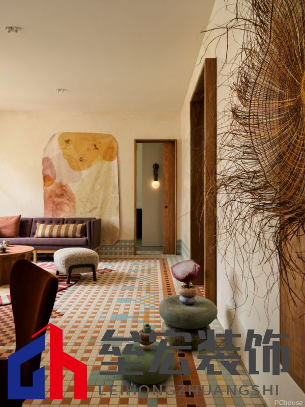 主臥室內,手工刺繡的床旗是設計師?Louis?Barthélemy?的定制作品,靈感來源于埃及神話,帶有一種俏皮的象征意義。房間內的家具具有懸浮的特質,定制木質控制臺輕輕懸浮在空中,增添了空間的輕盈感。燈具的選擇也是設計中的重要元素,串珠壁燈為臥室增添了一抹神秘與異國風情。衛(wèi)生間極具現(xiàn)代感且富有文化內涵。土耳其浴室風格的瓷磚裝飾為空間增添了異國情調,而模塊化的石盆則以簡潔的形式漂浮在櫥柜上方,增強了空間的流線感。主浴室的凹槽石榴石吊燈為房間增添了一抹奢華,結合了維多利亞時代的細節(jié)與中東風格的元素。 庭院設計打開了視線通道,使得從入口到花園的空間變得通透。庭院內的瓷磚圖案延續(xù)了室內的幾何主題,并以像素化的地板設計為主,將室內與戶外無縫連接。 |