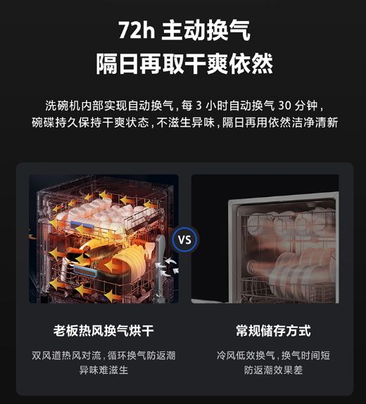 老板WB795X洗碗機(jī)采用了老板電器專利的三叉鯨噴式噴洗技術(shù),噴淋方向更為全面;針對中式烹飪重油重污的特點(diǎn),通過三層三叉立體噴洗,能夠無死角地對洗碗機(jī)內(nèi)的各種餐具進(jìn)行深度清洗。中式廚具中,鍋具的清理往往是最讓人痛苦的,不但充斥著大量的頑固油漬,還經(jīng)常有干涸的食材粘黏在鍋里,即便是用手清洗,也依舊非常麻煩,老板WB795X洗碗機(jī)作為能洗鍋的洗碗機(jī),通過其搭載的BLDC變頻電機(jī)能提供40000pa的高壓熱水,能夠快速溶解頑固殘?jiān)?,可對包括蒸鍋、炒鍋、電飯煲?nèi)膽在內(nèi)的多達(dá)三口鍋具進(jìn)行沖洗,同時72°高溫的煮洗也能確保對餐具內(nèi)常見的多種細(xì)菌進(jìn)行消殺,除菌率可高達(dá)99.99%,相當(dāng)于國家二星級消毒柜的效果,不僅能夠洗得干凈,還可以消的徹底。 很多家庭,雖然手洗餐具時洗得非常仔細(xì),卻沒有對餐具進(jìn)行擦拭的習(xí)慣,導(dǎo)致細(xì)菌通過殘留水跡再次附著,針對這一現(xiàn)象,老板WB795X洗碗機(jī)集烘干存放于一身,通過雙循環(huán)熱風(fēng)對機(jī)體內(nèi)部進(jìn)行快速烘干,確保餐具在清洗后迅速恢復(fù)干燥狀態(tài),避免細(xì)菌二次滋生,同時老板WB795X洗碗機(jī)能夠一次清洗并收納多達(dá)95套餐具,且具有每3小時自動換氣半小時的功能,鮮存聯(lián)動,讓收納的餐具能夠及時通風(fēng),既避免了冷氣凝結(jié)沾染細(xì)菌,又能有效消除異味,讓廚房餐具即取即用,給消費(fèi)者的用餐健康做好最后一道防護(hù)。而且老板洗碗機(jī)尺寸也是比較符合我們對于節(jié)省空間的理念的。