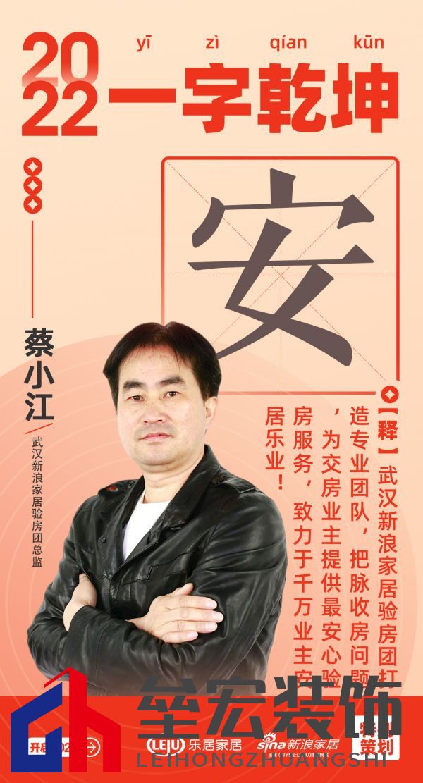 “樂業(yè)安居”是中國人最為共情之處,湖北家居人深諳漢字對于國人、對于企業(yè)的非凡意義,武漢新浪家居戰(zhàn)略合作伙伴、家居行業(yè)優(yōu)秀代表: 武漢新浪家居驗房團總監(jiān)蔡小江,以「安」字打開新年儀式感。 武漢新浪家居驗房團打造專業(yè)團隊,把脈收房問題,為交房業(yè)主提供最安心驗房服務,致力于千萬業(yè)主安居樂業(yè)?!赴病棺滞昝辣磉_了2022年武漢建博會的愿景。 虎歲賁華,說好中國字,鏈接美好生活! |