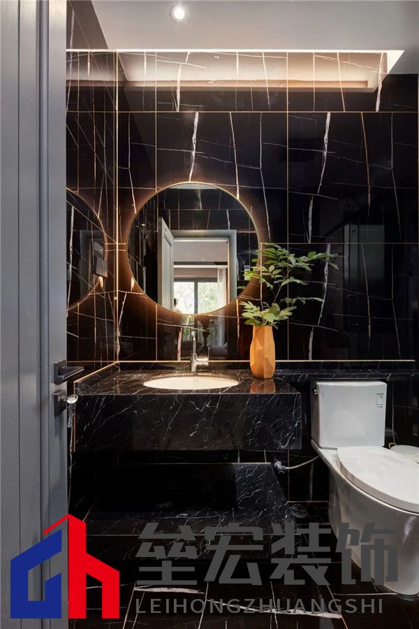 ??衛(wèi)浴間黑色和白色相呼應(yīng),橙色和綠色加以點(diǎn)綴,簡約的型體,輕盈靈動(dòng),清透空曠區(qū)域,在沉重的空間帶來呼吸感,使空間活起來。精美的妝面鏡,使視覺上變得更加明亮寬敞,干濕分離的設(shè)計(jì),實(shí)用而細(xì)膩,從細(xì)節(jié)體現(xiàn)出設(shè)計(jì)者對高品質(zhì)生活的追求。