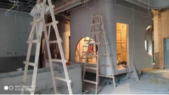施工前(左)與施工后(右) 我們遵照兒童的心理,從兒童的視角出發(fā),設(shè)計了這間兒童診室。外墻白色潔凈,并且采用了圓角設(shè)計保護兒童。彩色的不規(guī)則圓形窗,充滿了夢幻的氛圍,與診室內(nèi)的冷色燈光形成鮮明對比,營造出一種太空艙的感覺。 下方采用了懸空的設(shè)計,增強診室整體的獨特感與設(shè)計感,同時在下方的創(chuàng)意區(qū)域體現(xiàn)出了更多的童趣。