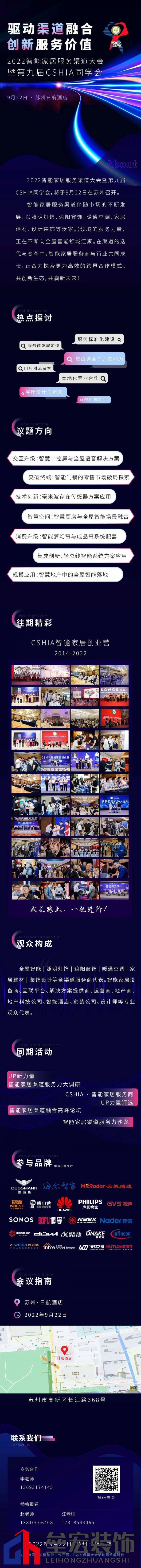 ??長(zhǎng)沙站創(chuàng)新產(chǎn)品展示現(xiàn)場(chǎng) ??精彩預(yù)告 ??2022年9月22日,“2022智能家居服務(wù)渠道大會(huì)暨第九屆CSHIA同學(xué)會(huì)”即將在蘇州舉行。本屆大會(huì)以驅(qū)動(dòng)渠道融合?創(chuàng)新服務(wù)價(jià)值為主題,全面聚焦全屋智能、照明燈飾、遮陽(yáng)窗飾、暖通空調(diào)、家居建材、裝飾設(shè)計(jì)等當(dāng)下智能家居行業(yè)最為關(guān)注的核心方向,并圍繞服務(wù)商發(fā)展定位、服務(wù)標(biāo)準(zhǔn)化建設(shè)、集成選品與方案能力、門(mén)店引流獲客、本地化異業(yè)合作、展廳設(shè)計(jì)與運(yùn)營(yíng)、交付與售后等議題展開(kāi)探討。 ??歡迎大家報(bào)名參與!
