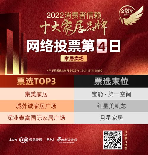 由樂居家居主辦,新浪家居承辦;CCTV《大國品牌》、家頁、家居質(zhì)量研究院、大國中居聯(lián)合主辦;全國工商聯(lián)家具裝飾業(yè)商會、中國建筑材料流通協(xié)會共同指導(dǎo);樂騰商學(xué)院、家頁智庫、家居質(zhì)量研究院提供研究支持。9月16日,第三屆《尋找優(yōu)質(zhì)消費者品牌--2022消費者信賴十大家居品牌》正式啟動。經(jīng)過企業(yè)申報、候選品牌公示環(huán)節(jié)后,于10月12日正式進入投票環(huán)節(jié)。>>點擊為家居賣場品牌投票