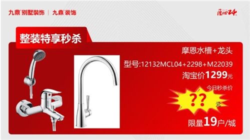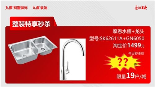 摩恩水槽+龍頭,型號:12132MCL04+2298+M22039,淘寶價1299元,今日秒殺價??元(限量19戶/城)