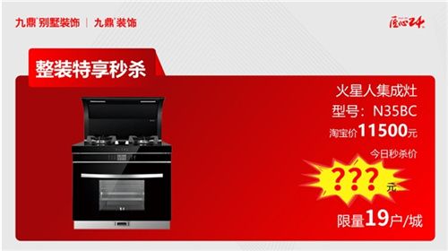 火星人集成灶,型號:N35BC,淘寶價11500元,今日秒殺價???元(限量19戶/城)