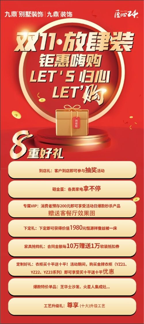 • 九鼎裝飾百城聯(lián)動,總部千萬補貼助力,雙11.放肆裝!