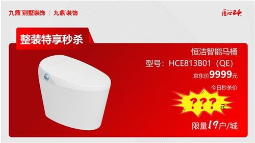 恒潔智能馬桶,型號:HCE813B01(QE),京東價9999元,今日秒殺價???(限量19戶/城)