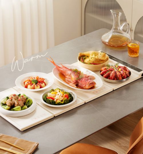 最有意思的一點就是,從形狀來看,區(qū)別于其他傳統(tǒng)的大塊暖菜板,它可以拼接使用,拆卸后能輕松收納,放到櫥柜等;幾個人用不到3塊加熱板,還能拆開使用,既不費電又實用;遇到聚餐,拼上5塊板,就能加熱10個菜了。