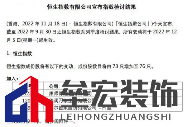 | 恒生指數(shù)公司11月18日發(fā)布季檢結(jié)果,恒生指數(shù)成份股將由73只增加至76只,海爾智家、華潤萬象生活和康師傅控股3只股票獲納入,所有變動將于2022年12月5日(星期一)起生效。同時,海爾智家還被納入恒生滬深港通中國企業(yè)指數(shù)。