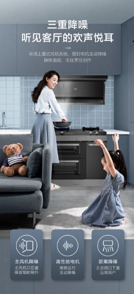 此時,美的新靜吸煙機X2S化身武林高手,以“金鐘罩”技能隔絕噪音,一招擊破,讓噪音退!退!退!
