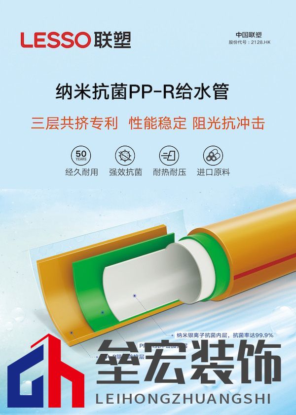 ??供水管道陳舊老化已經(jīng)成為水質(zhì)污染的一大威脅,如果給水管道質(zhì)量不達標(biāo)、外露、隔光效果不好,容易使水管內(nèi)壁滋生細菌附著于管壁內(nèi),當(dāng)管道中水流較慢或停流時,經(jīng)過繁殖會形成菌群從而影響水質(zhì),為了從根源上解決問題,我們需要破壞細菌在管壁內(nèi)滋生的環(huán)境,讓細菌無安生之地! ??聯(lián)塑好管家推薦:聯(lián)塑納米系列抗菌管 ??納米抗菌管是在PP-R管基礎(chǔ)上的升級,它不僅具有PP-R管材的所有特性,而且具有顯著的抗菌效果。管材采用高科技抗菌材料納米銀離子,能夠直接深入細菌的細胞核,讓細菌窒息而死,具有高效廣譜抗菌功效,無毒無污染,納米抗菌技術(shù)能夠廣泛抗菌而且效果持久。經(jīng)國家權(quán)威機構(gòu)檢測表明,管材對大腸桿菌、金黃色葡萄球菌及鼠傷寒沙門氏菌抗菌率達90%以上,各種衛(wèi)生指標(biāo)均達到國家標(biāo)準(zhǔn),納米抗菌 PP-R管是一種功能性給水管,可直接用于純凈水輸送系統(tǒng),是生活用水的衛(wèi)生防線。