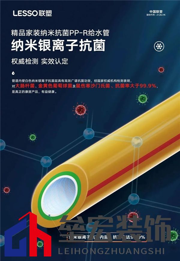 ??● 阻光抑菌,高效持久 ??聯(lián)塑納米系列抗菌管是在PP-R管的基礎(chǔ)上改進(jìn),它不僅具有PP-R管材的特性,而且具有顯著的抗菌效果,管材采用高科技抗菌材料納米銀離子,經(jīng)國(guó)家權(quán)威機(jī)構(gòu)檢測(cè)表明,對(duì)大腸桿菌、金黃色葡萄球菌及鼠傷寒沙門(mén)氏菌抗菌率達(dá)90%以上,有效抑制細(xì)菌、藻類(lèi)滋生!