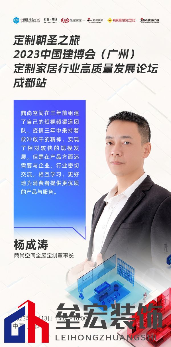 ??鼎尚空間全屋定制董事長楊成濤:鼎尚空間在三年前組建了自己的短視頻渠道團隊,疫情三年中秉持著敢沖敢干的精神,實現(xiàn)了相對較快的規(guī)模發(fā)展,但是在產(chǎn)品方面還需要與企業(yè)、行業(yè)密切交流,相互學(xué)習(xí),更好地為消費者提供更優(yōu)質(zhì)的產(chǎn)品與服務(wù)。