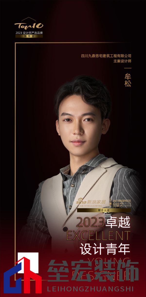 | ??室內設計是一種創(chuàng)意與藝術的結合,設計者結合市場共同趨勢和藝術發(fā)展變革,深入探尋人與人、人與空間、空間與自然的和諧關系。由新浪家居和金堂獎全國聯(lián)盟發(fā)起的“2023卓越設計青年”,是設計業(yè)界最具傳播價值的年度先鋒榮譽,新浪家居與金堂獎聯(lián)名認證,旨在發(fā)掘和表彰室內設計領域表現(xiàn)卓越的杰出青年設計師。本期四川九鼎悠宅建筑工程有限公司 主案設計師牟松榮膺“2023卓越設計青年”稱號。