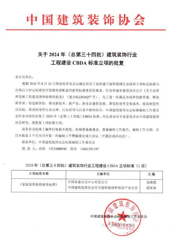 今朝裝飾董事長 戴江平 下半場的家裝行業(yè),需要更新服務(wù)體系,使其適配時代,適配需求,適配市場。本次T20峰會中裝協(xié)住宅產(chǎn)業(yè)分會宣布由中國消費品質(zhì)量安全促進會和中國建筑裝飾協(xié)會聯(lián)合立項發(fā)布、由中國質(zhì)量認證中心有限公司與中國建筑裝飾協(xié)會住宅裝飾裝修和部品產(chǎn)業(yè)分會具體編制的《家庭裝飾裝修服務(wù)標準》已正式立項,并面向全行業(yè)征集參編單位。