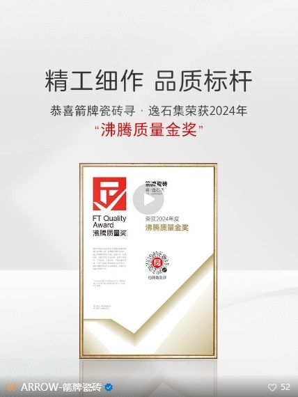??箭牌瓷磚的每一份榮譽(yù)背后,都是對(duì)品質(zhì)的不將就。 ??未來,箭牌瓷磚將載譽(yù)前行,持質(zhì)以恒,不斷提升消費(fèi)者的生活品質(zhì)體驗(yàn),推動(dòng)行業(yè)高質(zhì)量發(fā)展。 |