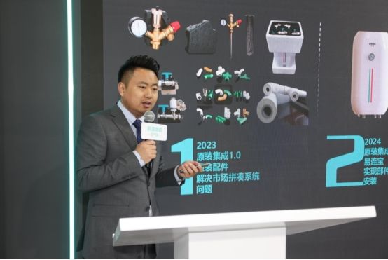 四季沐歌集團產品技術研究院副院長徐蒙 ??四季沐歌集團產品及系統(tǒng)開發(fā)中心部部長王帥推介的空氣能原裝采暖系統(tǒng)易連系列,2小時即可快速安裝,當天實現采暖,比同類產品節(jié)能20%,提供6年全套保修服務,耐用且性價比高。