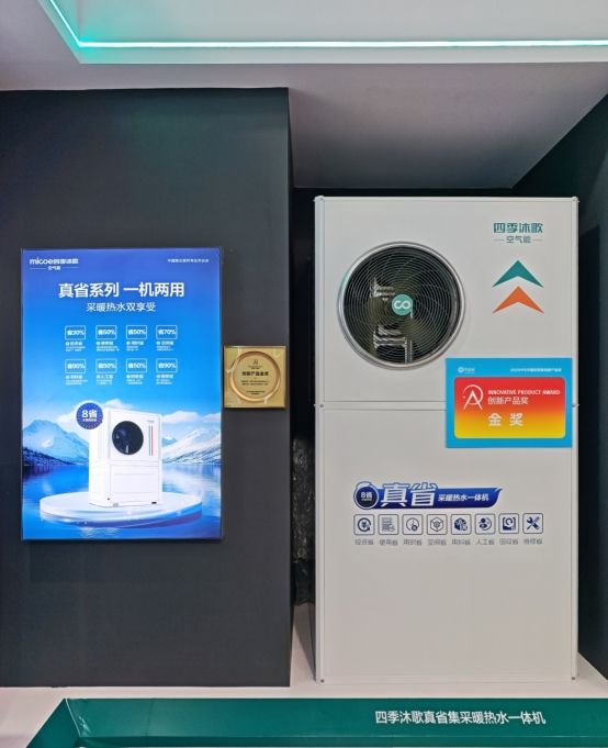 ??“真省”原裝集成采暖機是針對農村小戶型家庭和留守群體需求打造的專屬解決方案?!罢媸 痹b集成采暖機通過技術集成與成本優(yōu)化,低價更高配,內置水泵、膨脹罐,名義制熱量高達9.2kW,滿足70-80平米小面積住宅采暖需求,整機兩小時安裝,當天就采暖。此外,借助“國補”政策,“真省”原裝集成采暖機終端售價補貼后低至約8000元,打破萬元價格限制,減輕農村消費者負擔,詮釋了“以用戶為中心”的理念,推動清潔能源采暖走進千家萬戶。 ??“零碳”先行 ??打造綠色轉型“中國樣板” ??能源領域高能耗、高碳排制約我國經濟可持續(xù)發(fā)展,在全球能源轉型和“雙碳目標”推動下,眾多行業(yè)急需綠色“低碳供熱”轉型。四季沐歌作為清潔能源行業(yè)頭部品牌,二十余年來秉承“清潔世界,美好生活”使命,自主創(chuàng)新,承擔行業(yè)領軍責任。 ??展會現場,四季沐歌空氣能真省系列采暖熱水一體機、分體式空氣能熱泵機組榮獲“2025HPE中國熱泵展創(chuàng)新產品金獎”,展現了創(chuàng)新成果與行業(yè)引領地位。四季沐歌空氣能展區(qū)的全系列產品矩陣涵蓋家居、小區(qū)、商業(yè)、工業(yè)采暖及光儲充熱解決方案,展示了技術積累與創(chuàng)新成果,為供熱行業(yè)低碳轉型提供新路徑。
