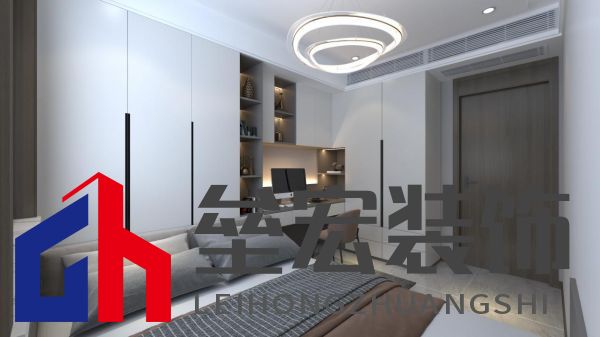 ??小臥室空間不大,設(shè)計(jì)L型衣柜與書(shū)柜連起來(lái),中間為寫(xiě)字臺(tái),這樣衣物存儲(chǔ),辦公學(xué)習(xí),書(shū)及文件的存儲(chǔ)空足夠多,不浪費(fèi)空間。