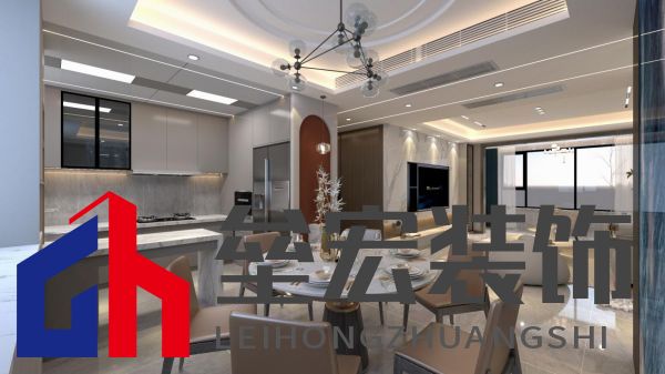 ??廚房為開(kāi)放式設(shè)計(jì),這樣空間更大,廚房與餐廳相接處為吧臺(tái)設(shè)計(jì),人少時(shí)可以在吧臺(tái)上吃早點(diǎn),吧臺(tái)也可以作為廚房緩沖的中島臺(tái),廚房做出的飯菜可以通過(guò)吧臺(tái)過(guò)度到餐桌。 ??餐廳為圓桌,南北寬度比東西要大,所以酒柜考慮在北面窗戶(hù)處,這樣不會(huì)影響圓餐桌的擺放,餐廳背景墻兩側(cè)為護(hù)墻板,中間采用大理石奢石,猶如一副抽象畫(huà),高端且優(yōu)雅。