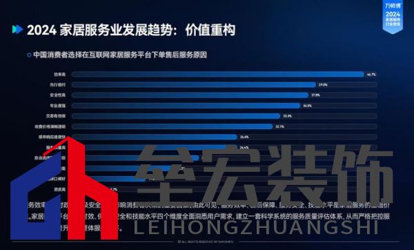 報(bào)告顯示,效率高、先行賠付、安全性高、專(zhuān)業(yè)性強(qiáng)是中國(guó)消費(fèi)者選擇線上下單家居服務(wù)的主要原因。而用戶(hù)評(píng)價(jià)及品牌口碑是用戶(hù)選擇平臺(tái)的重要決策要素,其次是服務(wù)覆蓋率和服務(wù)價(jià)格。