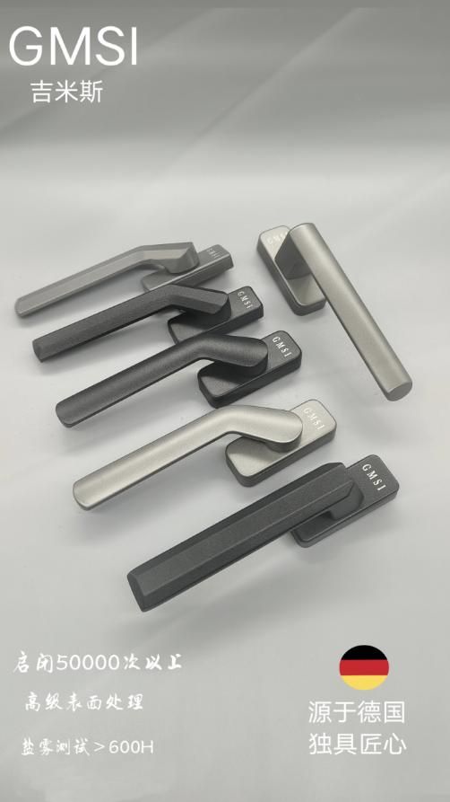 ??3. 把手系列:時尚舒適,經(jīng)久耐用 ??GMSI 吉米斯的把手系列產(chǎn)品,以其多樣的款式和出色的質(zhì)感備受青睞。無論是簡約現(xiàn)代的直線條設(shè)計(jì),還是優(yōu)雅流暢的曲線造型,都能滿足不同消費(fèi)者的審美需求。把手表面經(jīng)過高級處理,觸感舒適,且具有良好的耐磨性和耐腐蝕性。品牌承諾啟閉 50000 次以上,鹽霧測試大于 600H,這意味著即使在潮濕、多鹽霧的環(huán)境中,把手依然能保持亮麗如新,正常使用。無論是家居裝修還是商業(yè)空間,GMSI 吉米斯的把手都能為門窗增添一份精致與品質(zhì)。