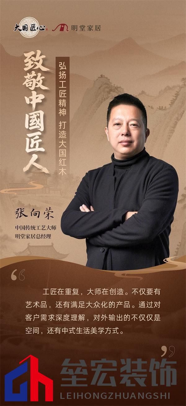 總經(jīng)理張向榮三十六載的堅守,恰是明堂精神的最佳注腳。從執(zhí)斧少年到行業(yè)領袖,他始終秉持“器以載道”的造物理念,將紅木家具升華為可觸摸的文明史詩,更以“斗方”新型建筑體系開辟傳統(tǒng)營造技藝的新紀元,讓千年智慧在當代城鄉(xiāng)建設中煥發(fā)新生。  明堂家居總經(jīng)理張向榮