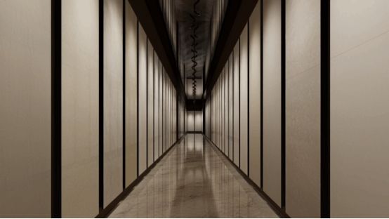 弧形選材區(qū)以立柱為中心,采用發(fā)散式弧形布局打破傳統(tǒng)展示邊界。鏡面天花與流暢的展線設(shè)計形成視覺延伸,讓空間在虛實交錯中倍增開闊感。